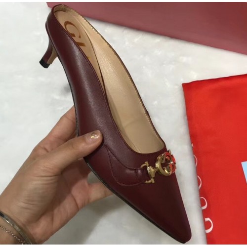 Gucci Heel 5.5cm Zumi Leather Slides 577053 Burgundy 2019