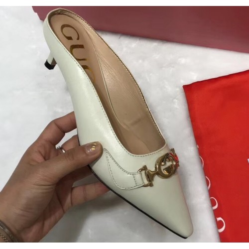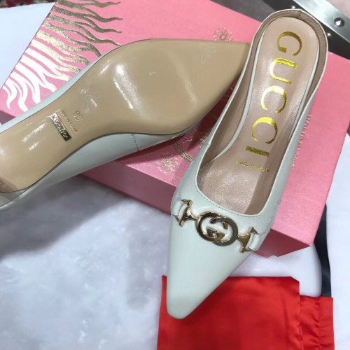 Gucci Heel 5.5cm Zumi Leather Slides 577053 Creamy 2019
