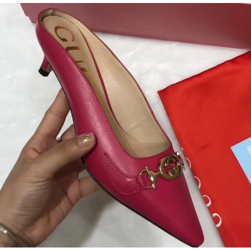 Gucci Heel 5.5cm Zumi Leather Slides 577053 Fuchsia 2019