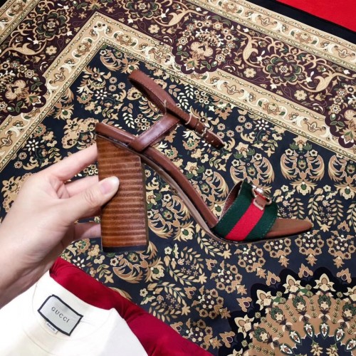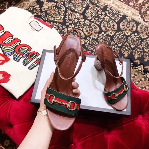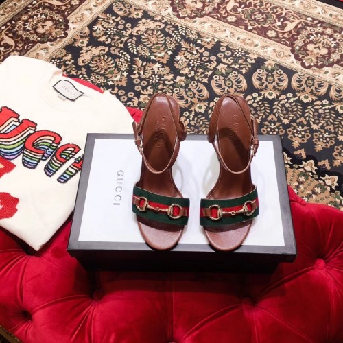 Gucci Heel 6.5cm/10.5cm Web Horsebit Fabric and Leather Sandals Brown 2019