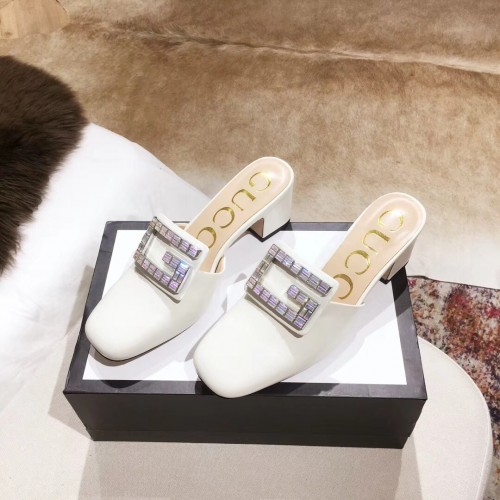 Gucci Heel 6cm Crystal G Slipper Mules White 2019