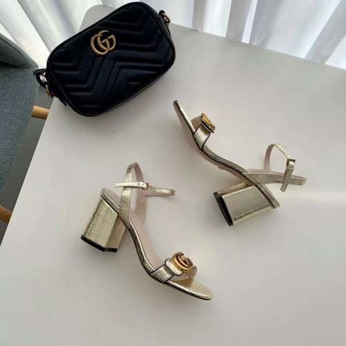 Gucci Heel 7.5cm Leather Sandals with Double G 453379 Gold