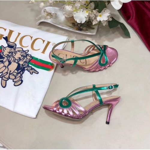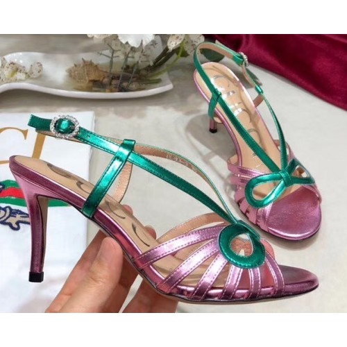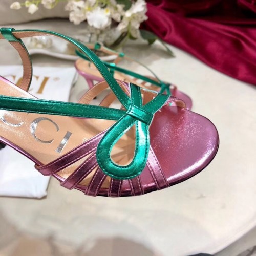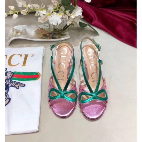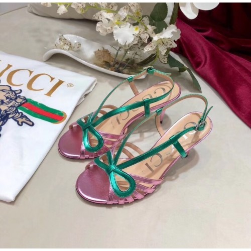 Gucci Heel 8.5cm Cut-out Bow Leather Sandals Pink/Green 2019