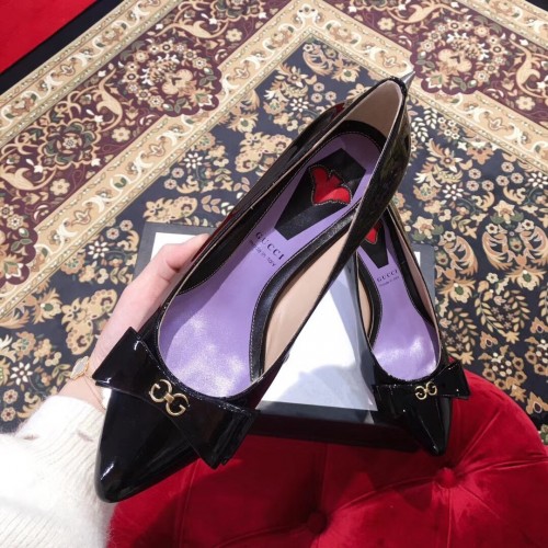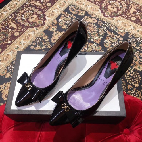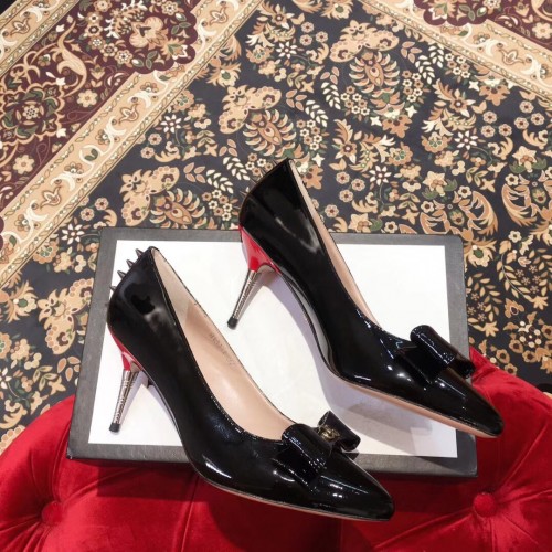Gucci Heel 8cm Patent Leather Silver-toned Spikes Pumps with Bow 549666 Black 2019