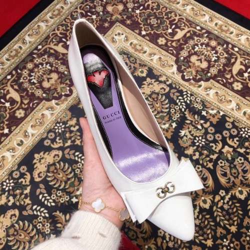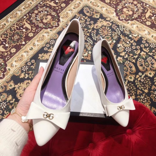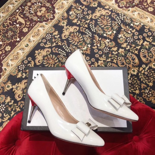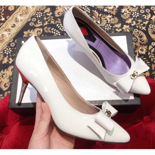 Gucci Heel 8cm Patent Leather Silver-toned Spikes Pumps with Bow 549666 White 2019
