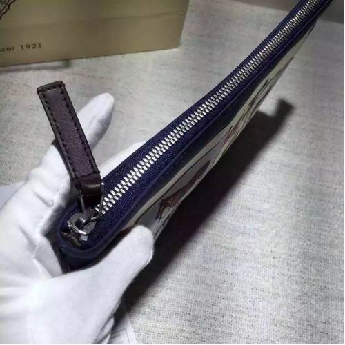 GUCCI HORSE FRAME PRINT TRAVEL POUCH IN BLUE