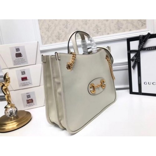 Gucci Horsebit 1955 Medium Tote Bag In White Leather