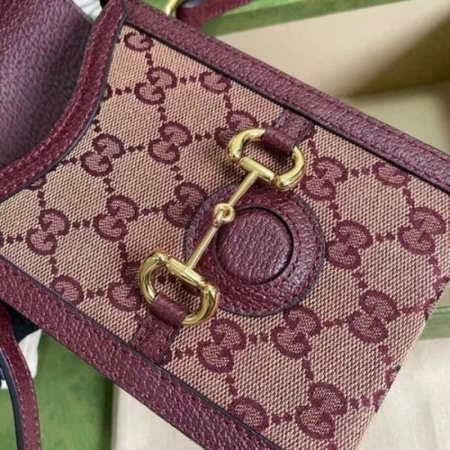 Gucci Horsebit 1955 Mini Bag In Bordeaux GG Canvas