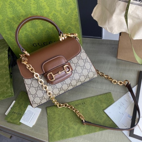 Tags: Gucci Horsebit 1955 Mini Handbag in GG Canvas with Brown Leather, Gucci 1955 Horsebit Bag
