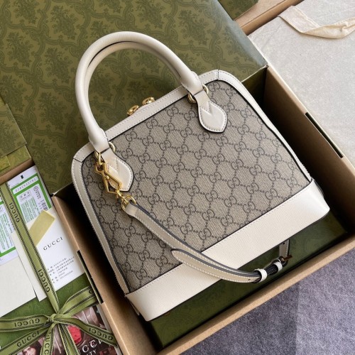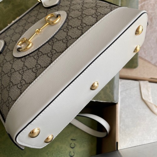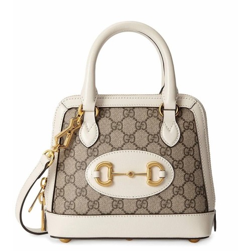 Tags: Gucci Horsebit 1955 Mini Top Handle Bag in GG Canvas with White Leather, Gucci 1955 Horsebit Bag