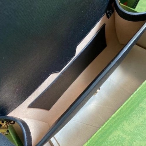 Embodying the notion of the versatility, the Gucci Horsebit 1955 is enriched with two detachable shoulder straps, one is crafted in emblematic green and red Web the other is in Gucci’s recognizable gold-toned chain design. The style is crafted from smooth leather and defined by the line's signature Horsebit hardware.