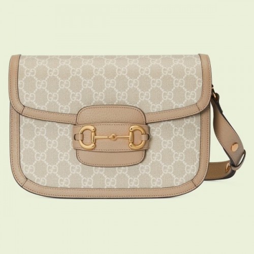 Gucci Horsebit 1955 Small Chain Bag in Beige GG Supreme Canvas
