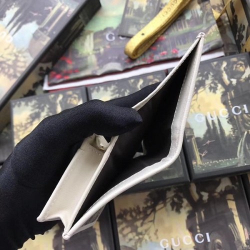 Gucci Horsebit 1955 Card Case Wallet In White Calfskin