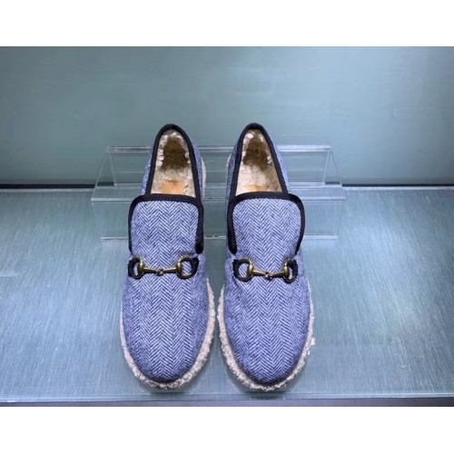 Gucci Horsebit Merino Wool Lining Loafers 575850 Denim Blue 2019