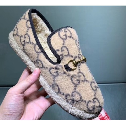 Gucci Horsebit Merino Wool Lining Loafers 575850 GG Wool Beige 2019