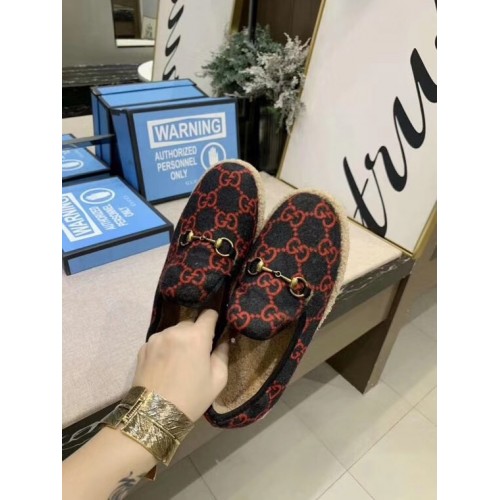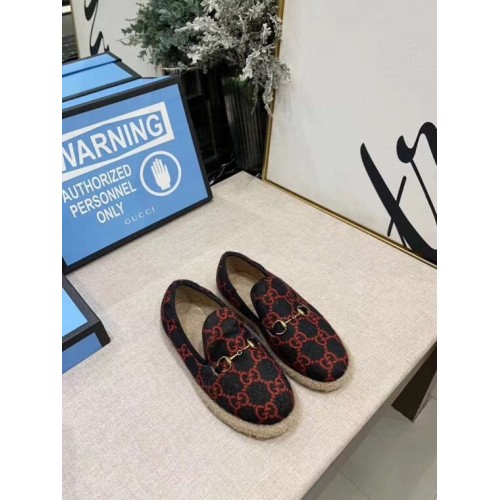Gucci Horsebit Merino Wool Lining Loafers 575850 GG Wool Blue/Red 2019