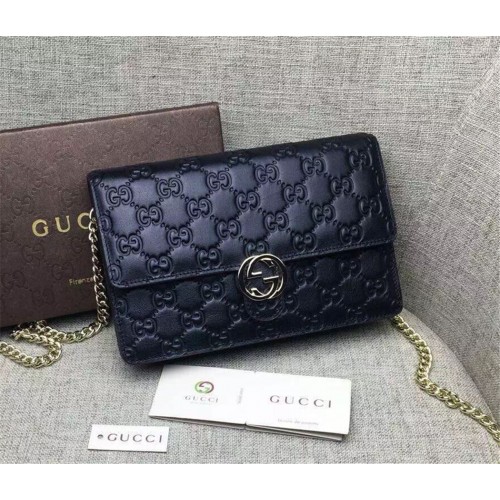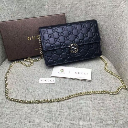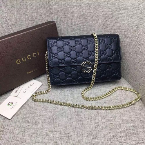 size:20*13*4.5 cmThe House's initials sit on the front of this chain wallet. Made in heat debossed Gucci Signature leather resulting in a defined print with a firm texture.Gucci Signature leather with leather trimInterior zip pocket and ten card slotsChain shoulder strap