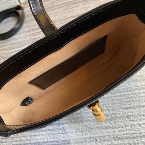 The reintroduction of the Jackie bag in a mini size for Fall Winter 2020 presents a new take on a historical Gucci icon. Brought back to the forefront, the recognizable shape is presented in smooth leather and enhanced with an additional, detachable shoulder strap. Attached to the bag with a buckle closure, the second strap adds a contemporary feel to the archival style, providing new ways to wear—from top handle, shoulder to cross body.