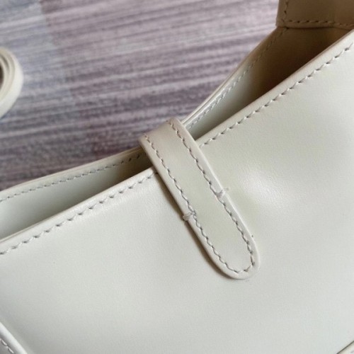 The reintroduction of the Jackie bag in a mini size for Fall Winter 2020 presents a new take on a historical Gucci icon. Brought back to the forefront, the recognizable shape is presented in smooth leather and enhanced with an additional, detachable shoulder strap. Attached to the bag with a buckle closure, the second strap adds a contemporary feel to the archival style, providing new ways to wear—from top handle, shoulder to cross body.
