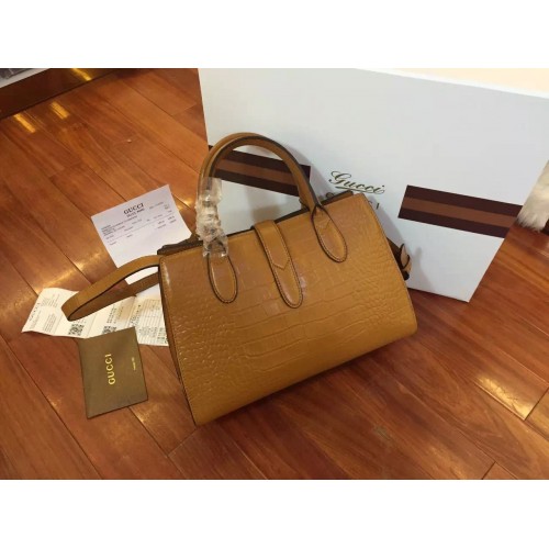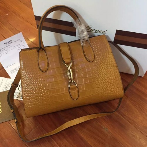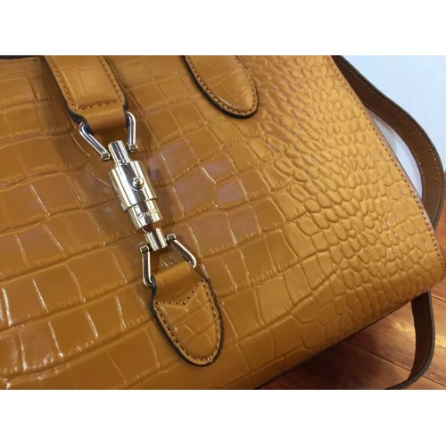 Gucci Jackie Soft Crocodile Top Handle Bag Brown