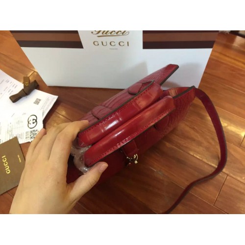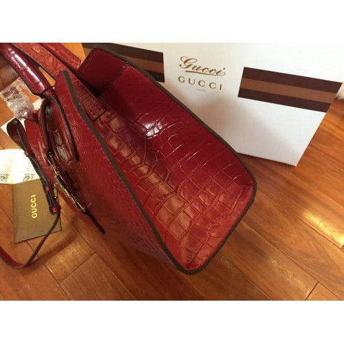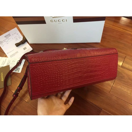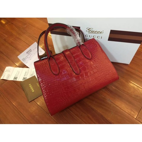 Gucci Jackie Soft Crocodile Top Handle Bag Red