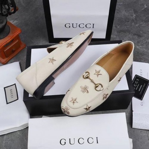 Embroidered with the signature insect motif amongst metallic stars, these Jordaan loafers from Gucci..