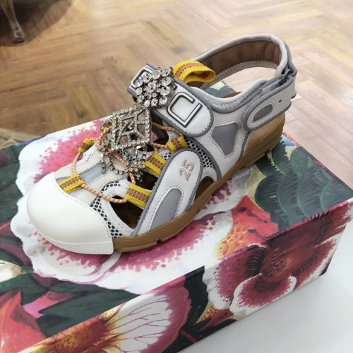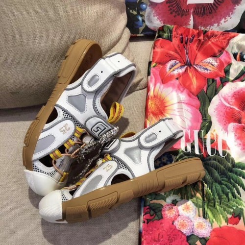 Gucci Leather and Mesh Reflective Fabric Sandals Crystal White 2019