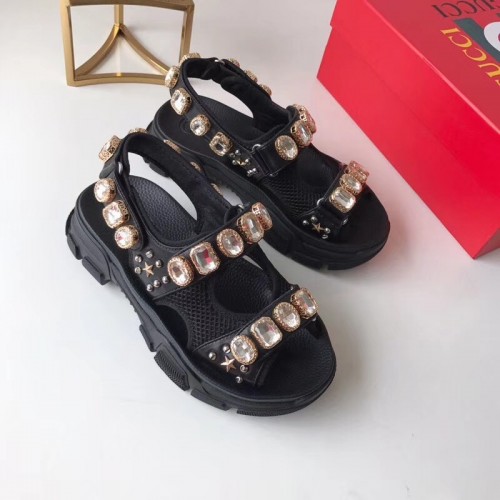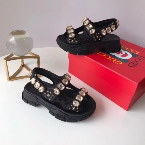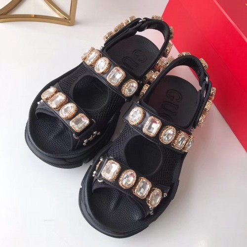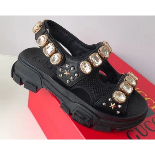 Gucci Leather And Mesh Sandals With Crystals 557471 Black 2019