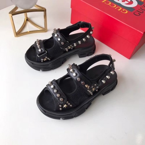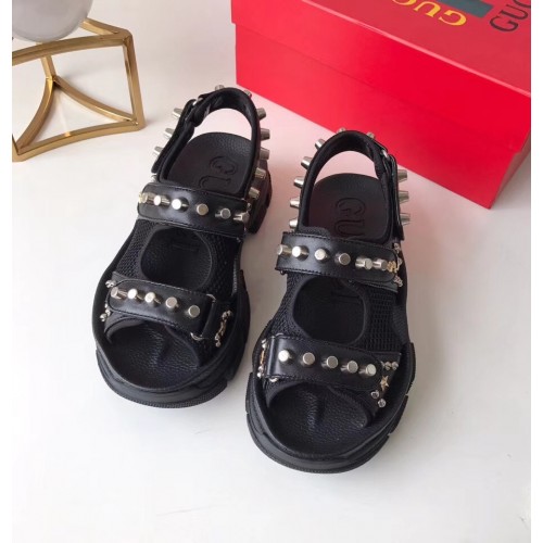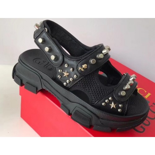 Gucci Leather And Mesh Sandals With Studs 546073 Black 2019