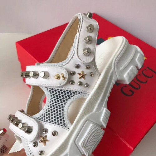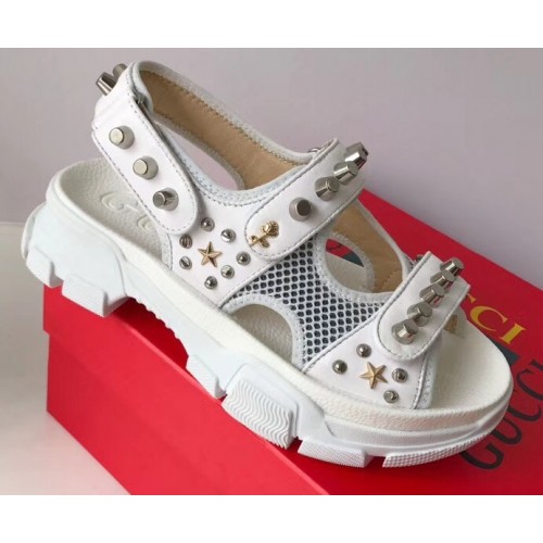 Gucci Leather And Mesh Sandals With Studs 546073 White 2019