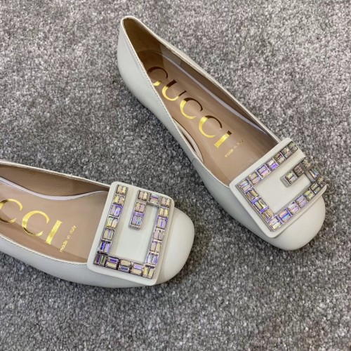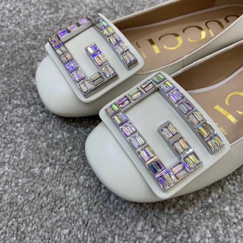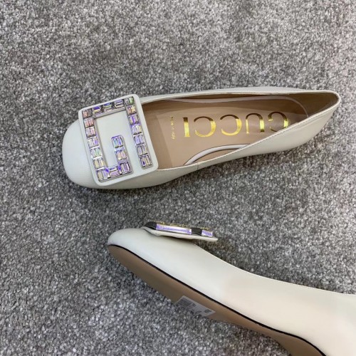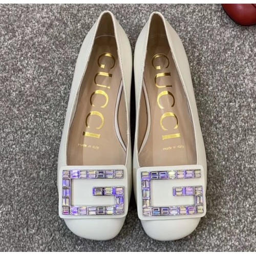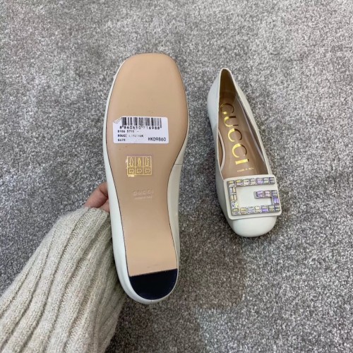 Gucci Leather Ballet Flats White With Crystal G 551434 2019
