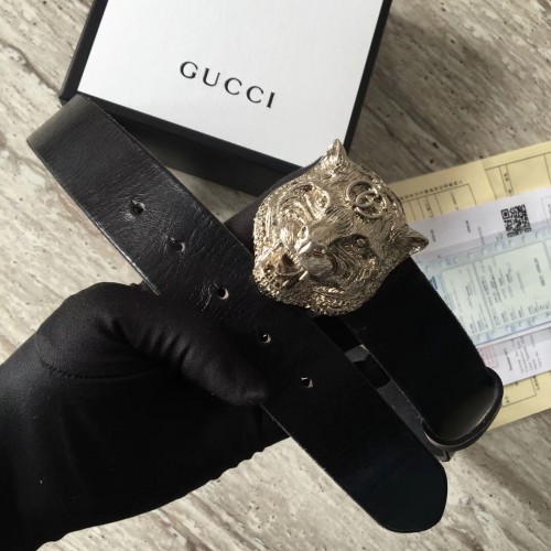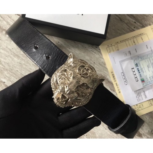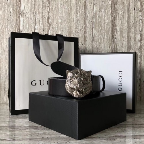 Gucci Leather Belt Black With Feline Buckle 409420