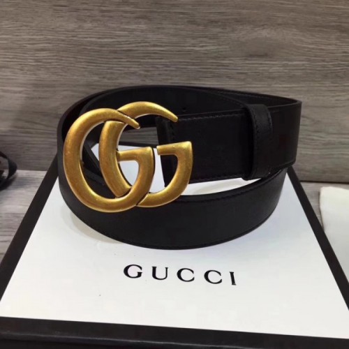 A black leather belt with our new Double G buckle.