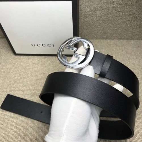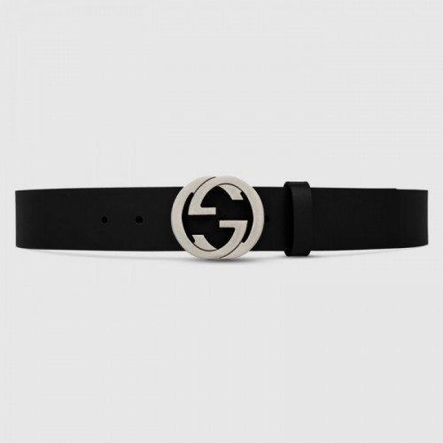 Tags: Gucci Leather belt with interlocking G Black 368186, ,