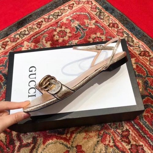 Gucci Leather Double G Flat Sandals 524631 Gold 2019