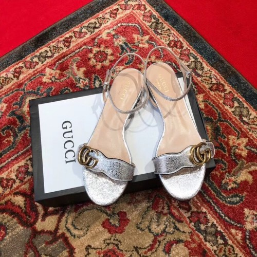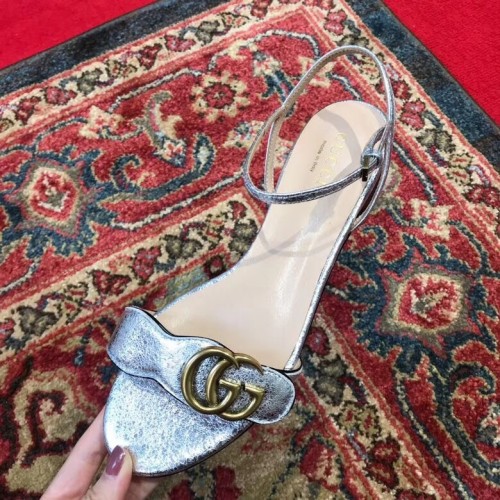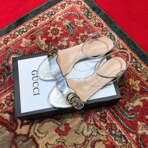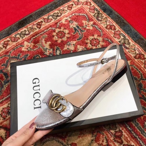 Gucci Leather Double G Flat Sandals 524631 Silver 2019