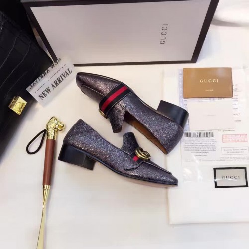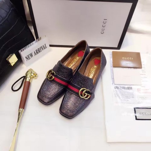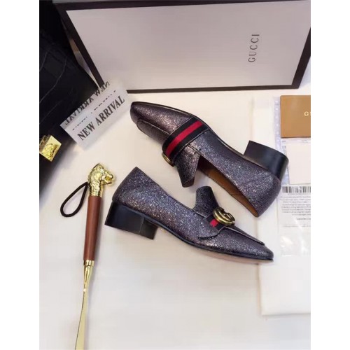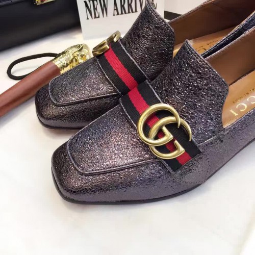Gucci Leather Double G mid-heel loafer shoes Metallic Black(Y30-721713)
