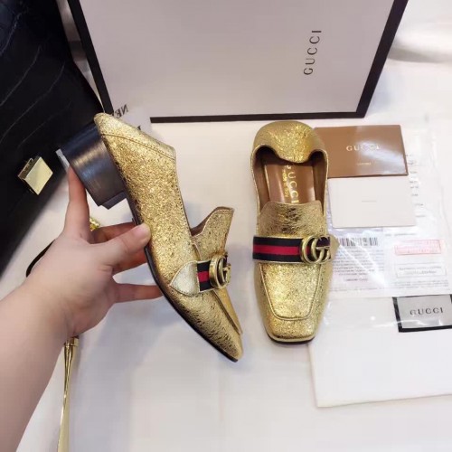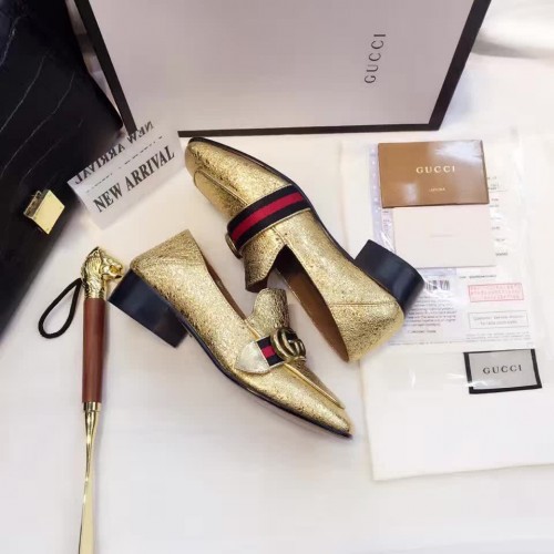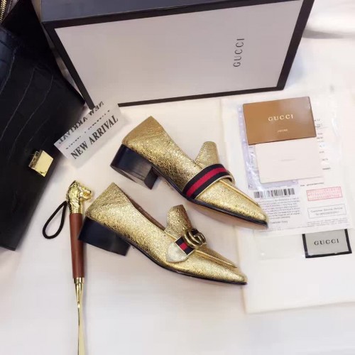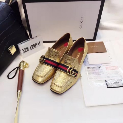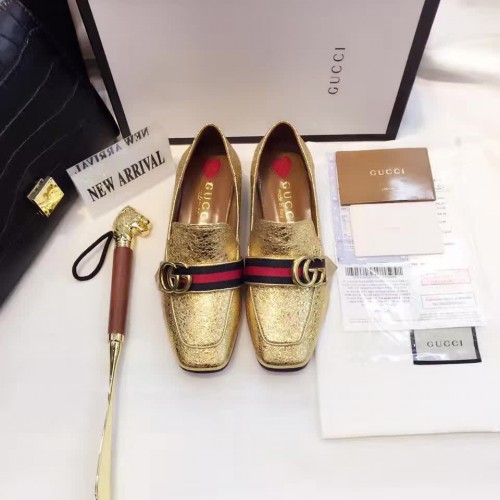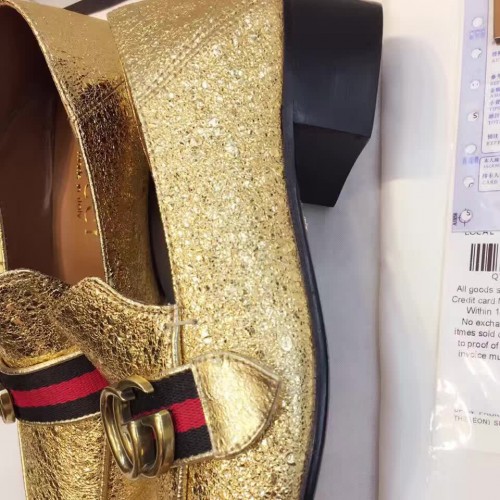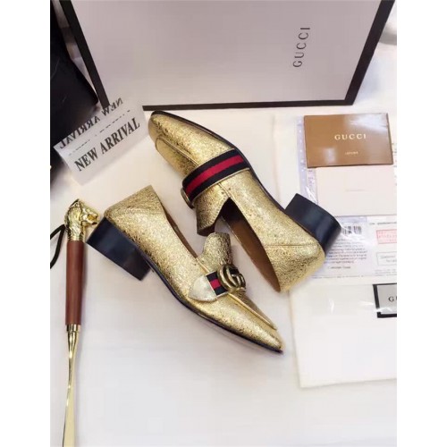 Gucci Leather Double G mid-heel loafer shoes Metallic golden(Y30-721711)