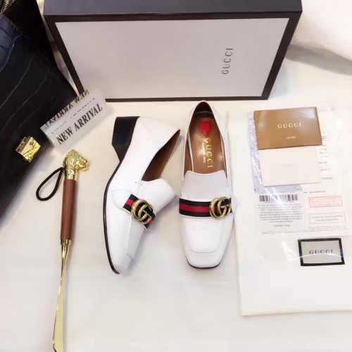 Gucci Leather Double G mid-heel loafer shoes White(Y30-721705)