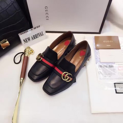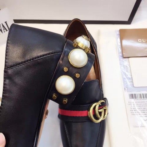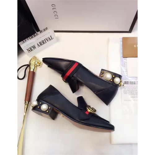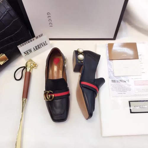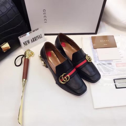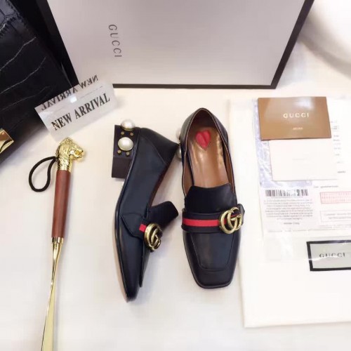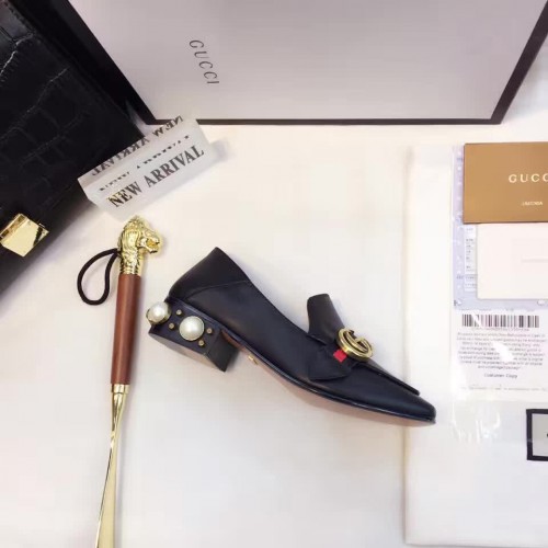 Gucci Leather Double G mid-heel preal loafer shoes Black(Y30-721704)