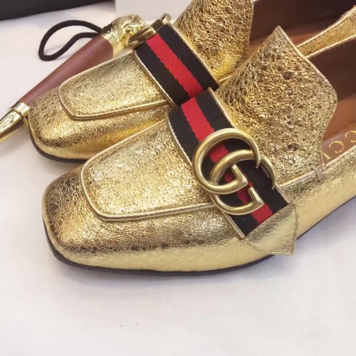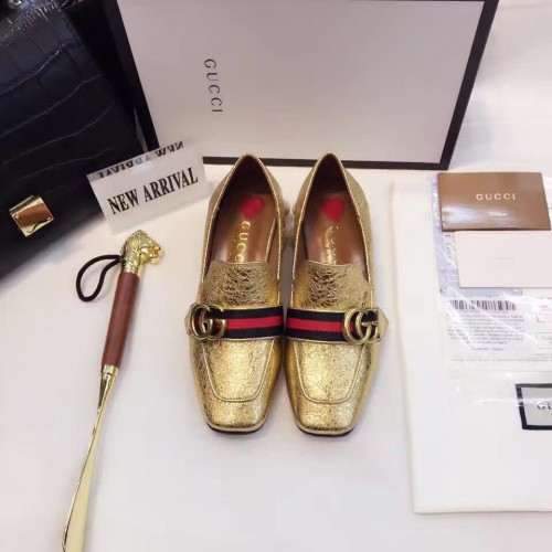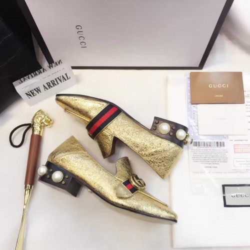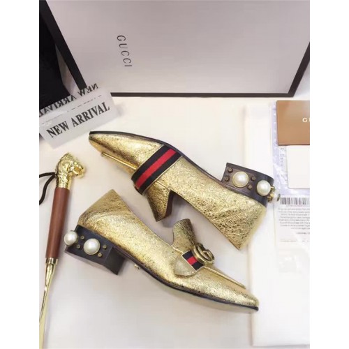 Gucci Leather Double G mid-heel preal loafer shoes Metallic golden(Y30-721712)