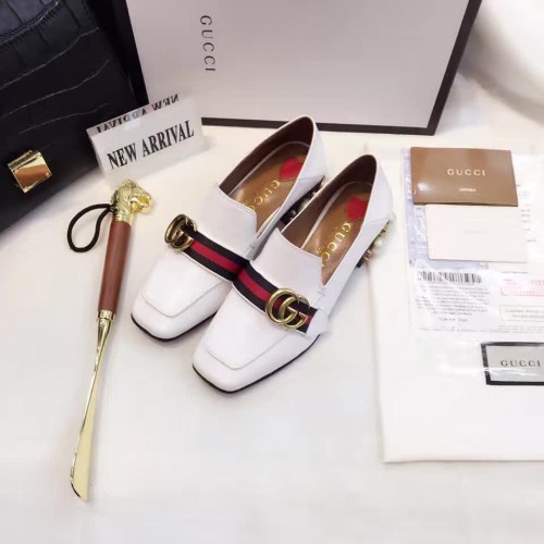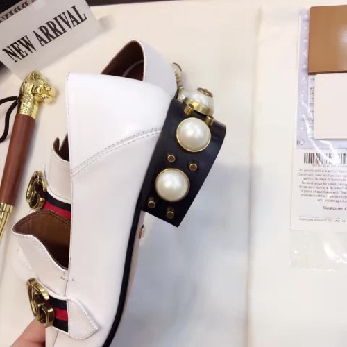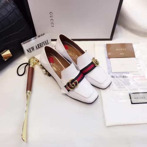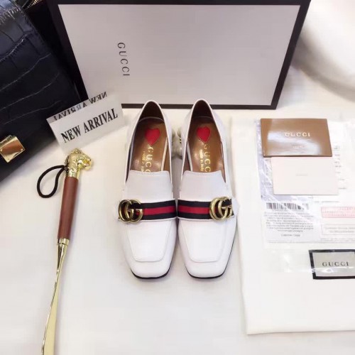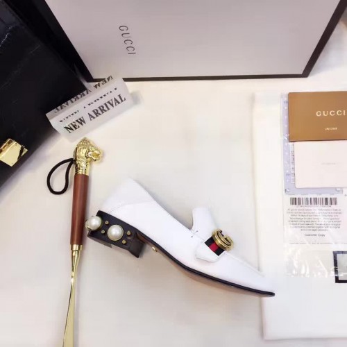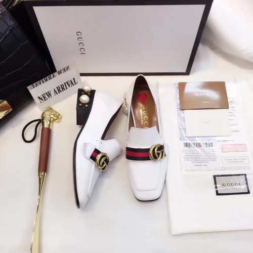 Gucci Leather Double G mid-heel preal loafer shoes White(Y30-721706)