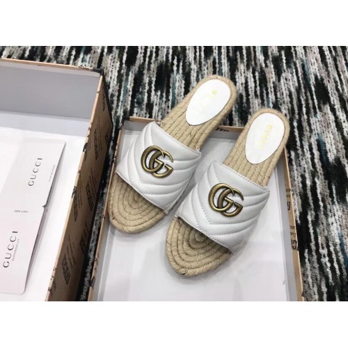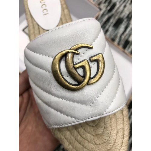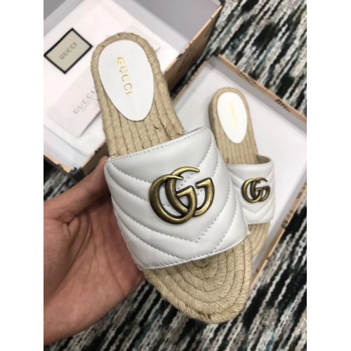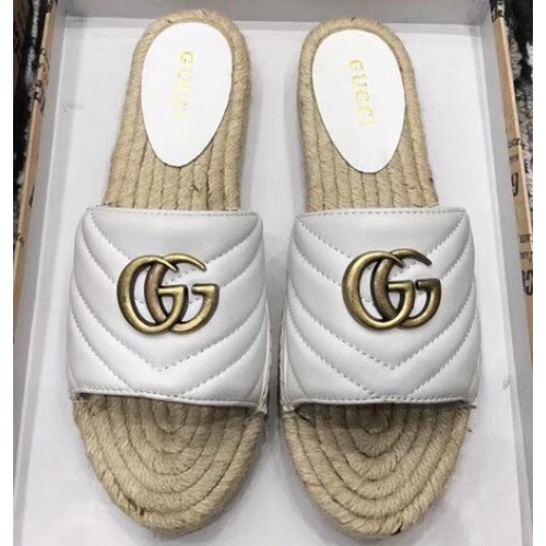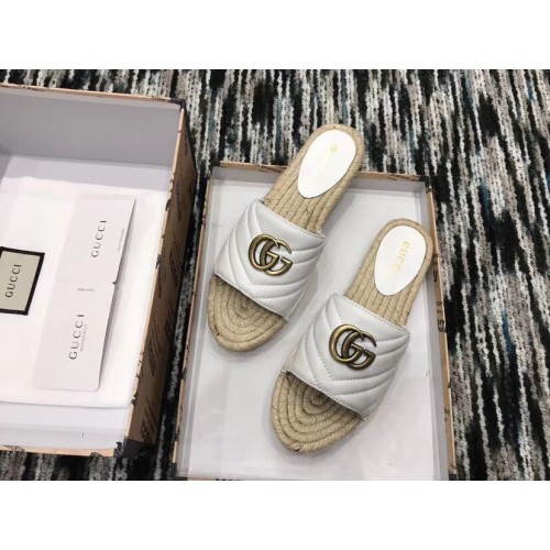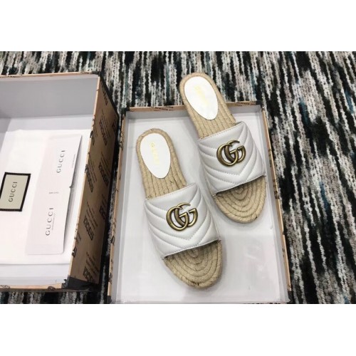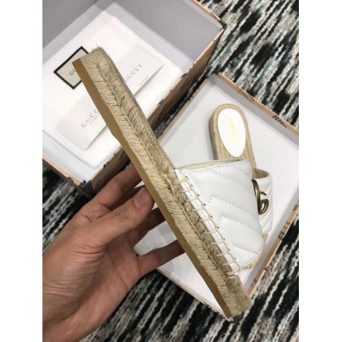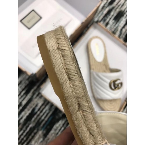 Gucci Leather Espadrilles Slides Sandals White With Double G 573028 2019
