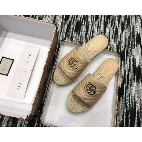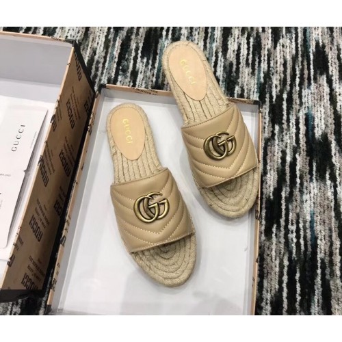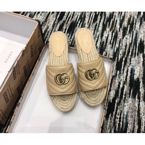 Gucci Leather Espadrilles Slides Sandals With Double G 573028 Nude 2019