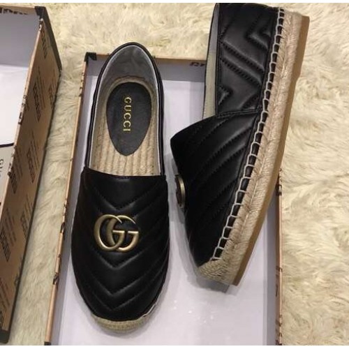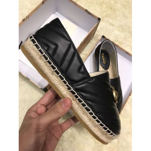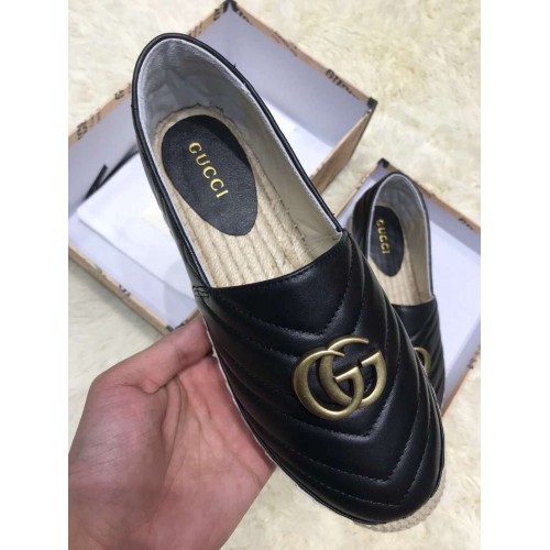 Gucci Leather Espadrilles With Double G 551890 Black 2019
