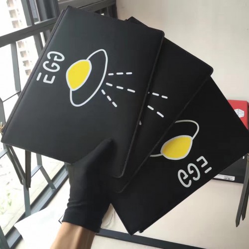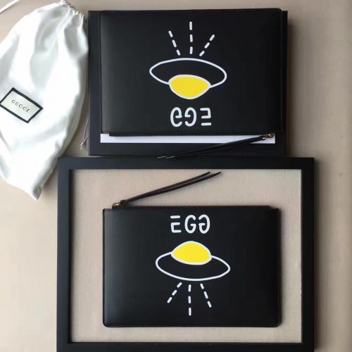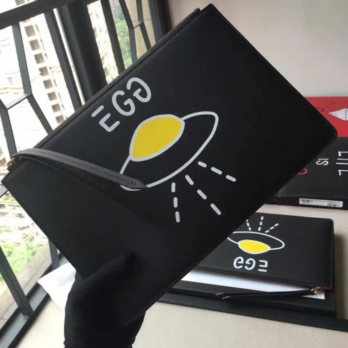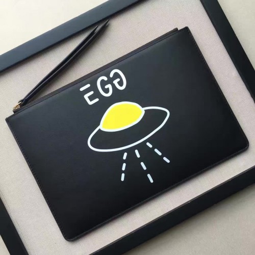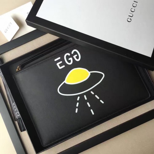 Gucci Leather GucciGhost Print Zip Pouch Clutch Bag 445597 Black/UFO 2016(742602)