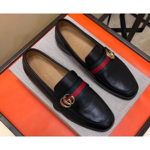gucci Leather loafer with GG Web 428609