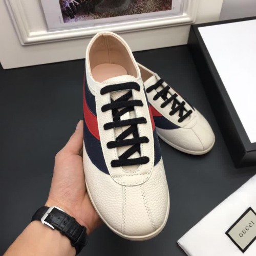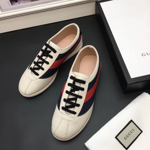 Gucci Leather Low-top For Men Sneaker With Web 483266 White 2017
