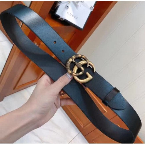 Gucci Leather Men's Belt with Snake Buckle 38mm Width Black