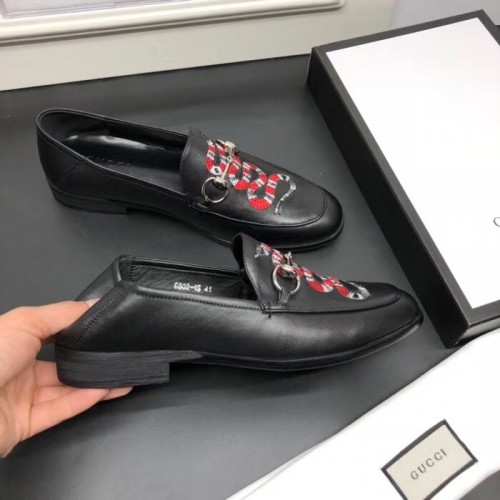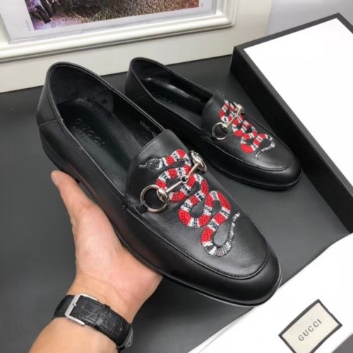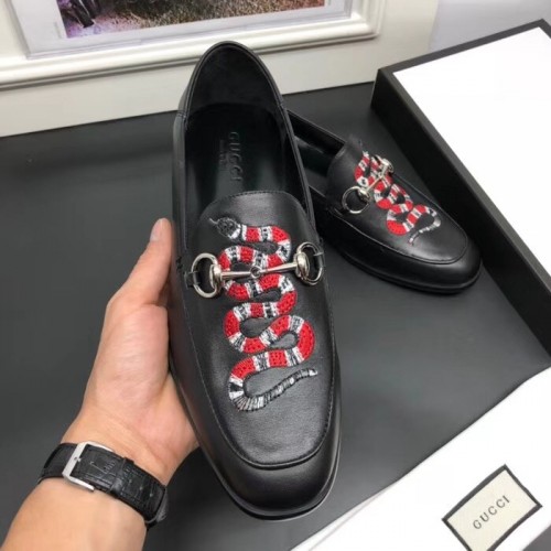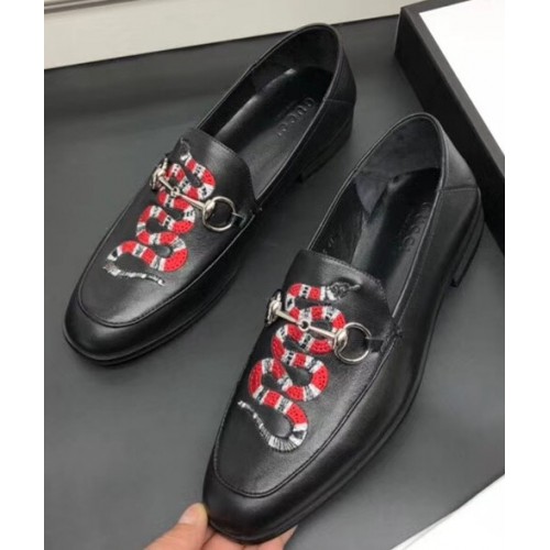 Gucci Leather Men's Loafer With Embroidered Kingsnake Black